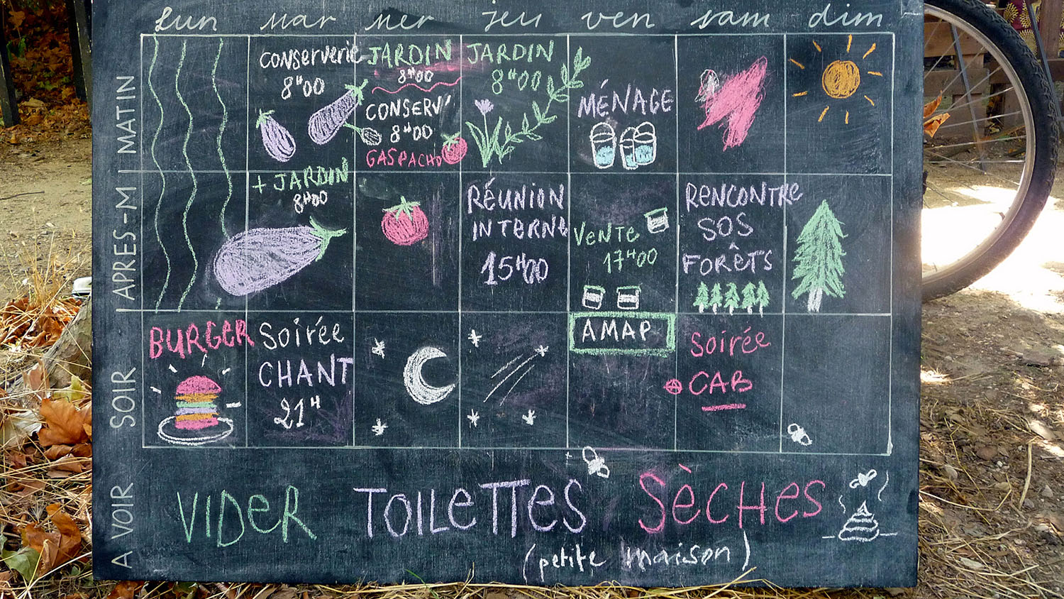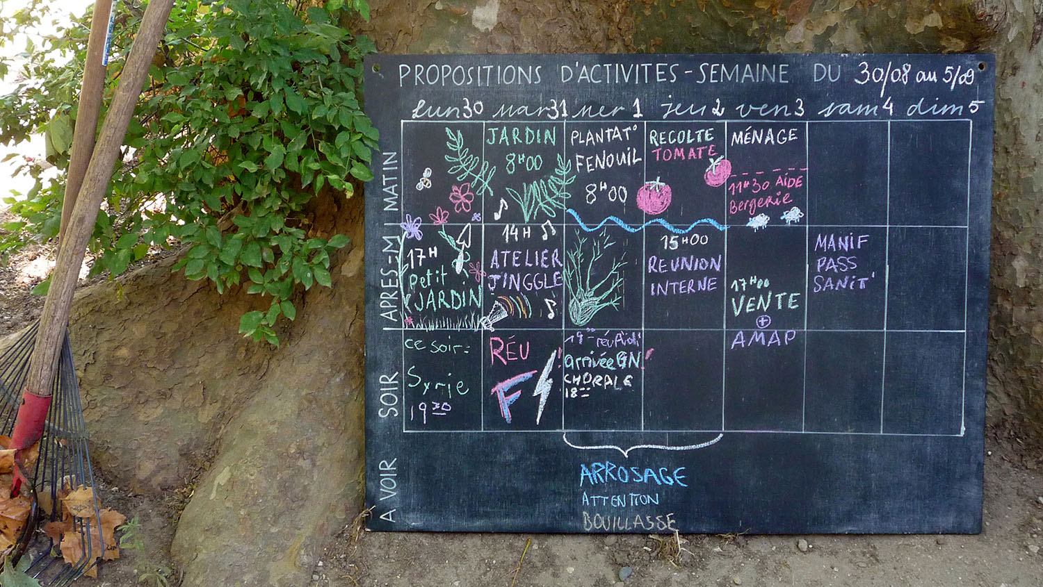 Nous vivons et travaillons en autogestion. Nous accueillons de nombreuses personnes